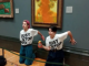 Just Stop Oil supporters have thrown soup over two Van Gogh paintings in central London.